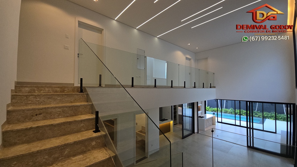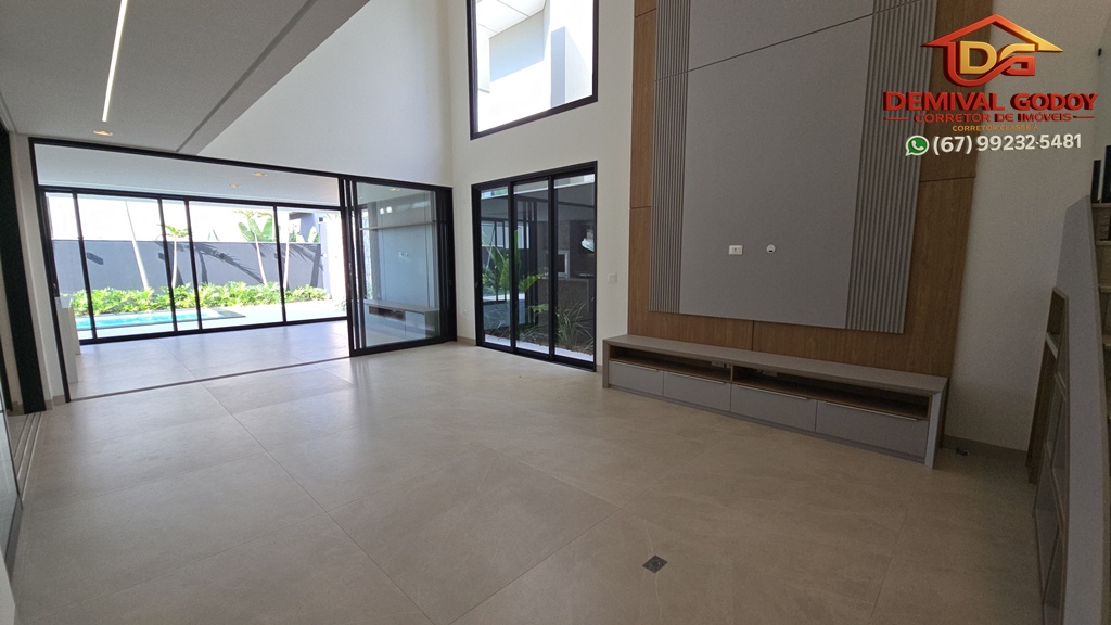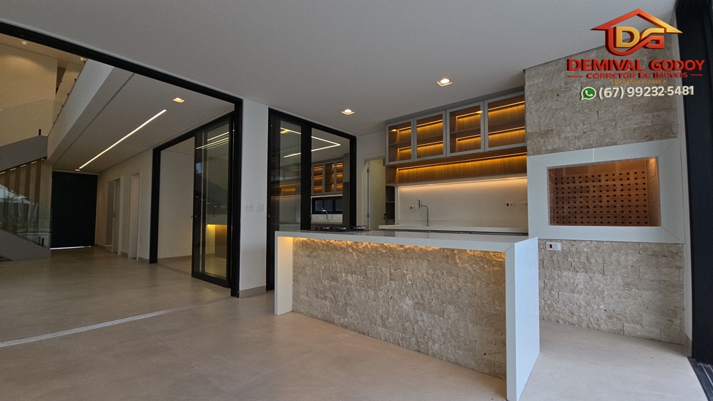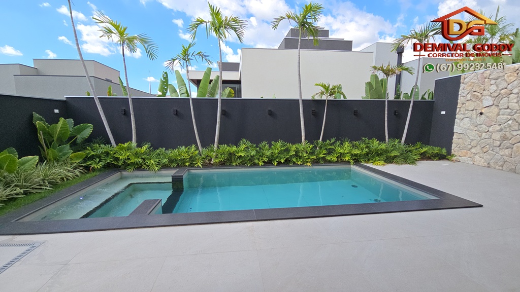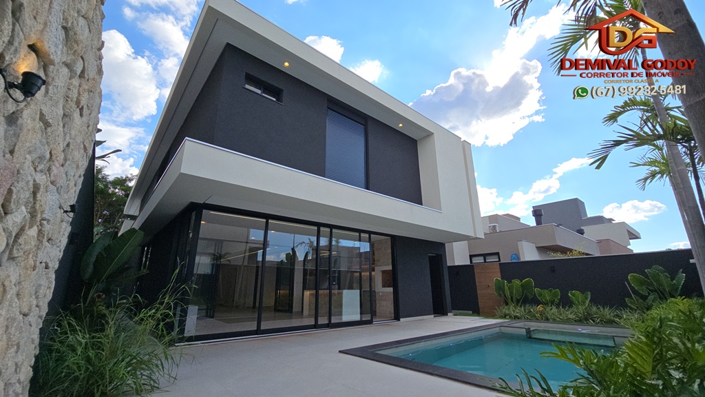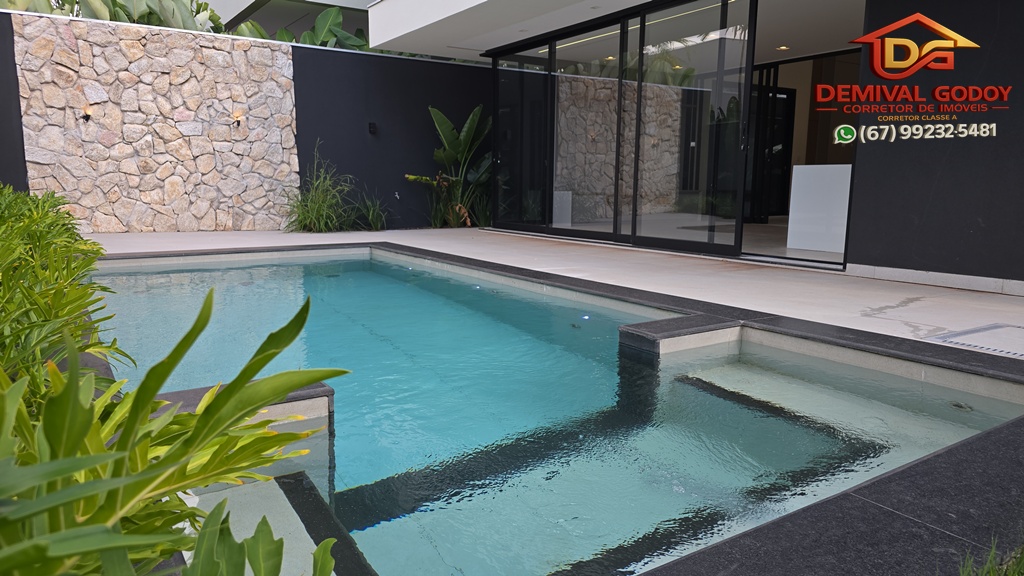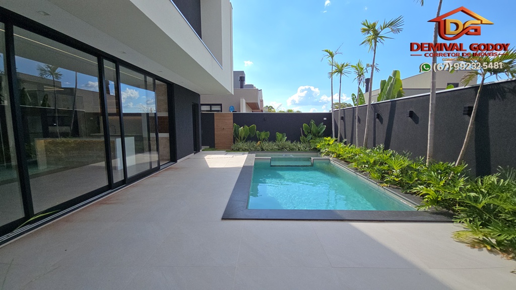 Sobrado com 4 suítes sendo uma no primeiro piso, sala para dois ambientes com pé-direito duplo, rico em móveis planejados, piscina, espaço gourmet com churrasqueira integrado com cozinha separados por esquadrias em alumínio, escritório, vaga de garagem para até 4 carros sendo duas coberta, acabamento de alto padrão. Área privativa com 280,18 m² mais 18,24 m² de piscina totalizando 298,42 m² com área de terreno de 364,77 m²