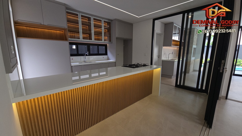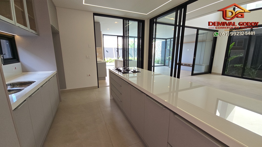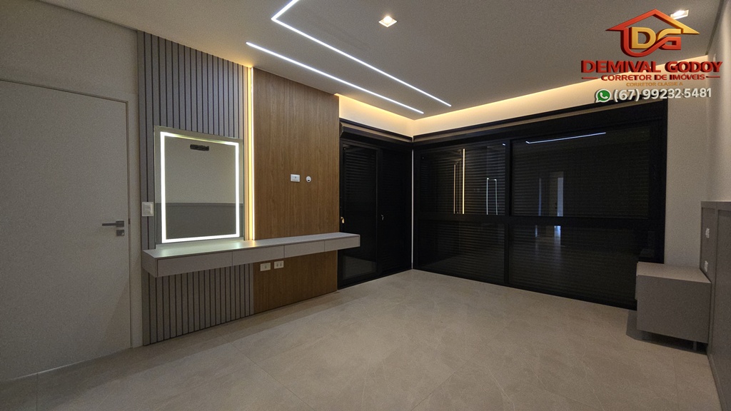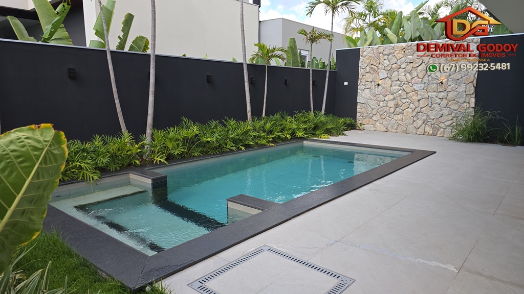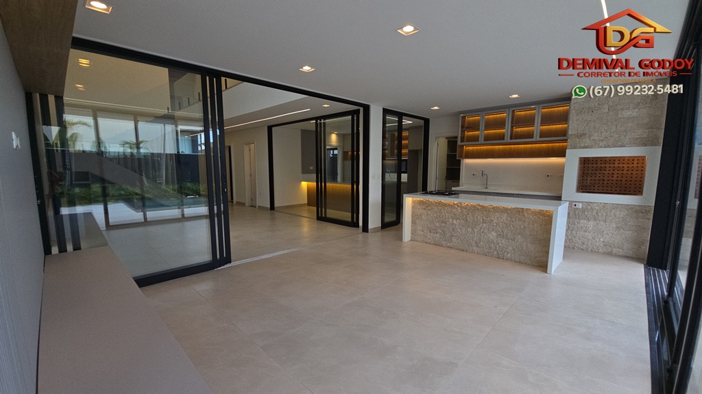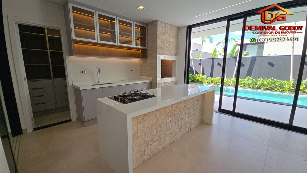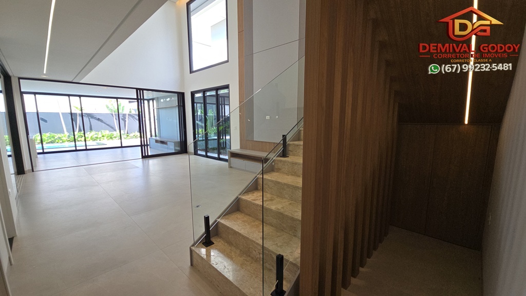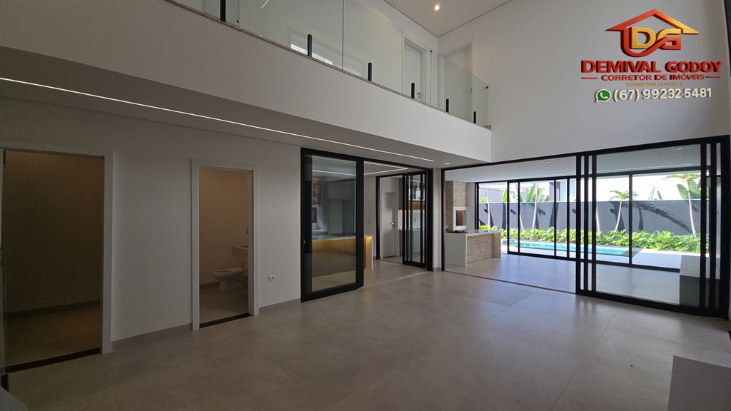 Sobrado com 4 suítes sendo uma no primeiro piso, sala para dois ambientes com pé-direito duplo, rico em móveis planejados, piscina, espaço gourmet com churrasqueira integrado com cozinha separados por esquadrias em alumínio, escritório, vaga de garagem para até 4 carros sendo duas coberta, acabamento de alto padrão. Área privativa com 280,18 m² mais 18,24 m² de piscina totalizando 298,42 m² com área de terreno de 364,77 m²