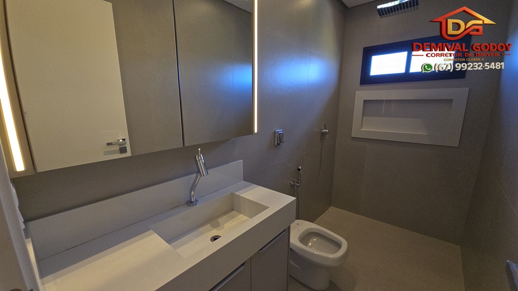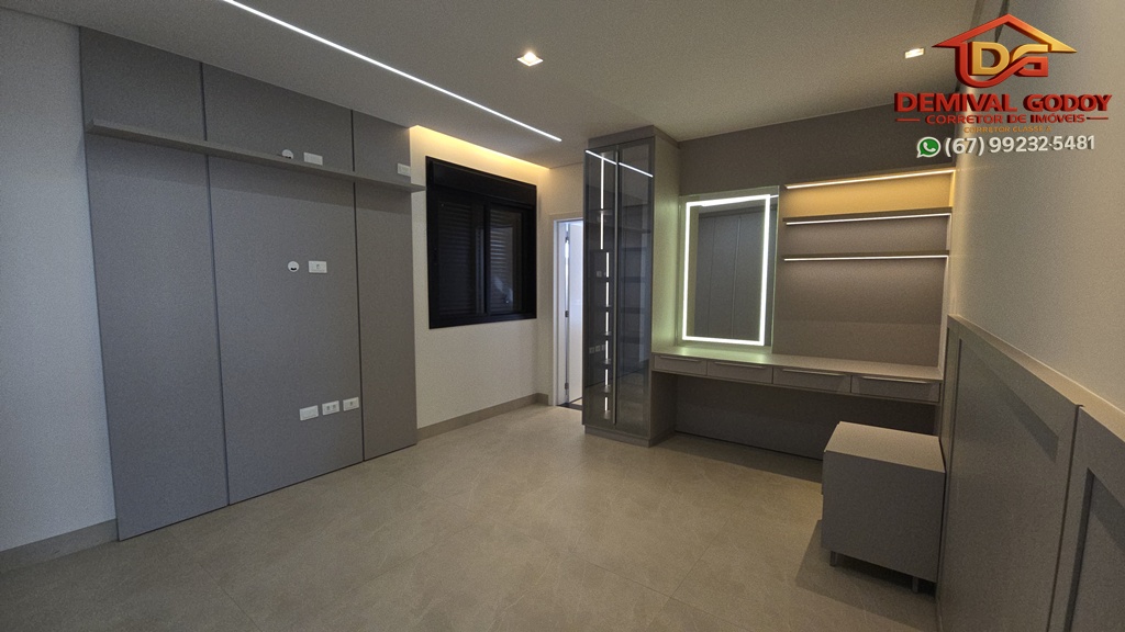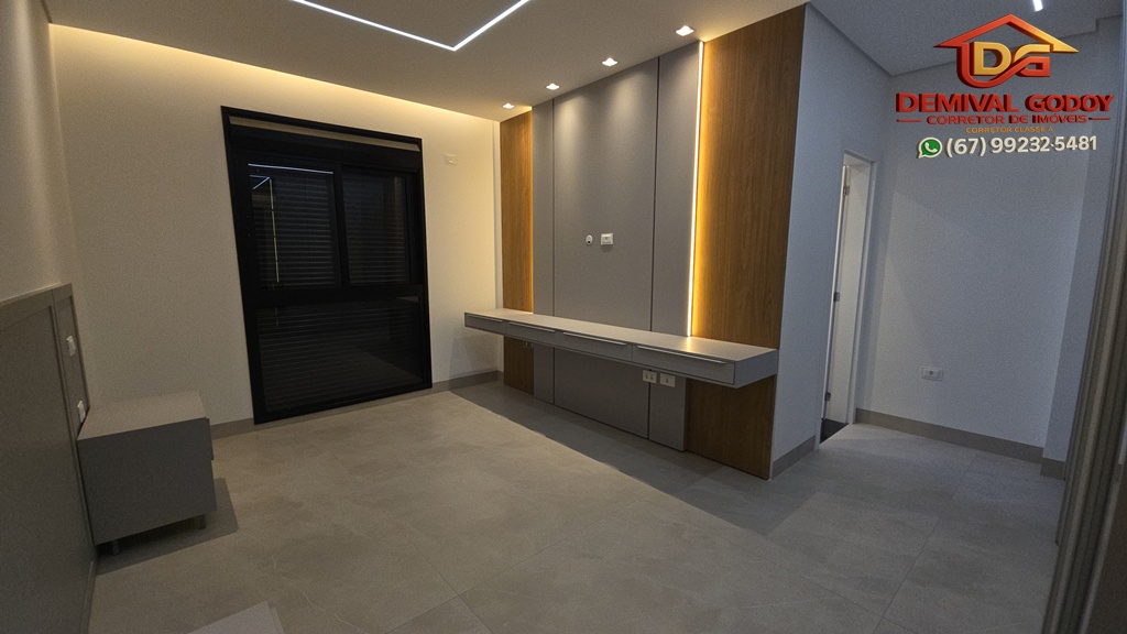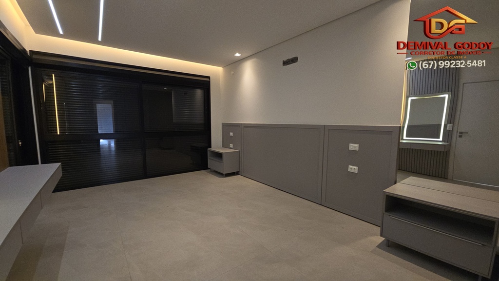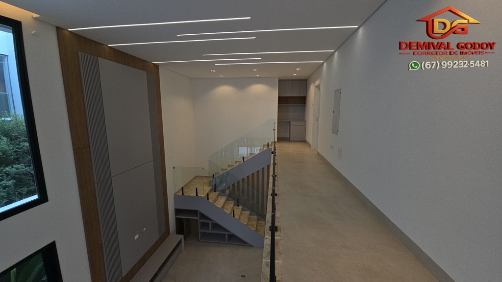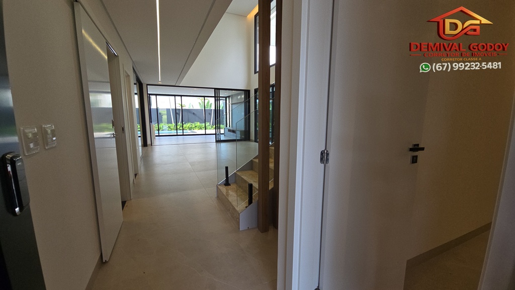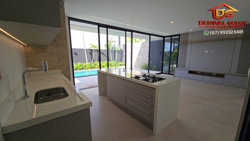 Sobrado com 4 suítes sendo uma no primeiro piso, sala para dois ambientes com pé-direito duplo, rico em móveis planejados, piscina, espaço gourmet com churrasqueira integrado com cozinha separados por esquadrias em alumínio, escritório, vaga de garagem para até 4 carros sendo duas coberta, acabamento de alto padrão. Área privativa com 280,18 m² mais 18,24 m² de piscina totalizando 298,42 m² com área de terreno de 364,77 m²