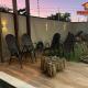 1 Mesa Cascata 4 lugares, 1 Balcão , 4 cadeiras, 4 banquetas de madeira maciça "Champanhe"